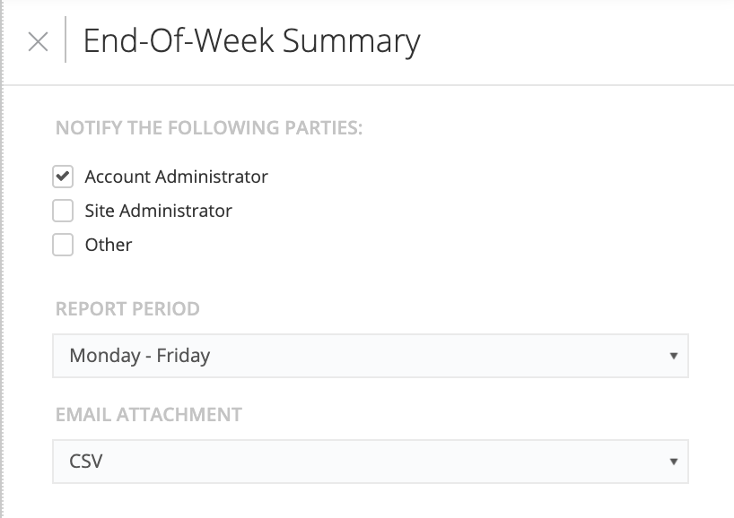 - Monday - Sunday. The report for this selection will be sent on Monday.